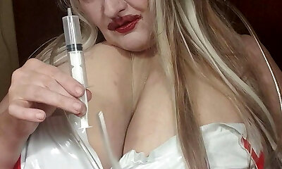 Blonde Brit doctor with massive tits is using her deep throat to make her patients feel excellent