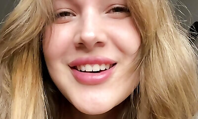 Russian cute babe Tieny masturbates her cock-squeezing pussy