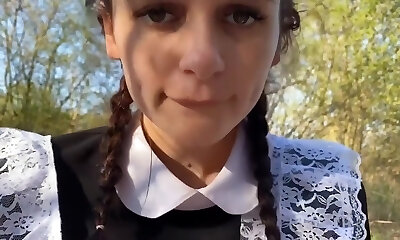 The Schoolgirl Went In For Sports In The Woods But Managed To Give Me A Blowjob