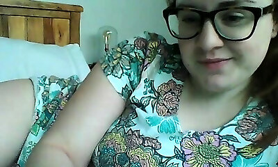 This frisky BBW coed with huge juggs likes to fap with her glasses on