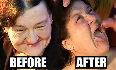 Very elder granny didn't know jism on her face