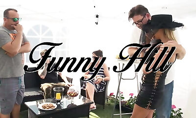 Two Super-hot Dominatrix torture a tied slave by tickling him ,laughing extreme !