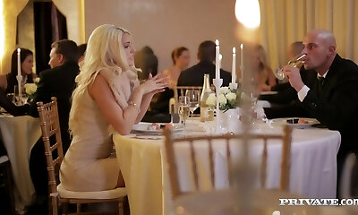 Trophy wife with massive tits in an extremely cock-squeezing dress