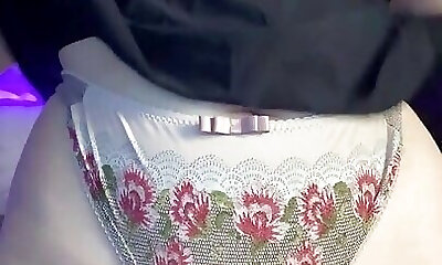 In underwear the blonde enjoys chisel in her ass with cumshot